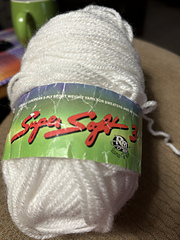 Sweater pattern on label uses sizes US#4 and #2 (some ribbing) with a gauge of 6 sts = 1 inch.