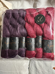 Our Mohair Silk base is a lace-weight yarn is made from stunning kid mohair and shiny mulberry silk. It’s perfect for lightweight shawls or garments, or it can be held together with another yarn for a fabric with a delicate halo.