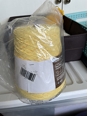 There are also vintage put-ups of two very similar Lily yarns: Sporty Sugar’n Cream (solid colors) and Sugar’n Cream Sprinkles (multi-colored/ombre/variegated colorways). Both are firmly wrapped in a cylindrical shape with tapered ends, and weigh 49.6 grams (1.75 ounces), with 147 meters (161 yards).