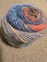 From LionBrand.com: “When you knit or crochet with this unique yarn, every row is a surprise. Mimicking the look of an expensive, hand-dyed yarn, the subtle patterns and shades that emerge as you work are truly Amazing. It has a soft, brushed texture and a lightweight construction that is warm, without being heavy, making it ideal for garments and accessories.”