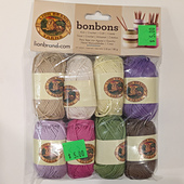 Bonbons are sold in a multi-pack of 8 colorways in mini-skeins of yarn (2.8 oz / 80 grams = 224 yards). Each mini-skein contains 28 yards (26 meters) in 0.35 oz (10 grams).