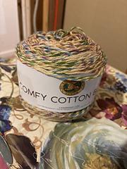 Tran seasonal and trendy, Comfy Cotton Blend is a 50% cotton, 50% polyester yarn with subtle flecks of color against a natural base. This lightweight CYC 3 yarn is perfect for summer shawls, tops, shrugs and adorable baby gifts. The large 200 gram convenient cake put up allows for crafters to make an entire scarf or small baby blanket with one cake and no ends to weave in!