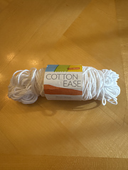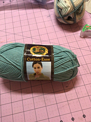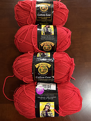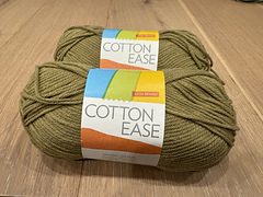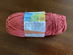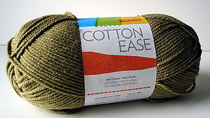 From LionBrand: “Cotton-Ease is a versatile, soft cotton blend worsted weight yarn. Combining the absorbency of cotton with the lightweight of acrylic, it is ideal for making year-round garments and accessories for the entire family.”