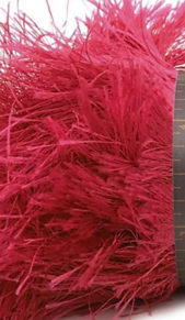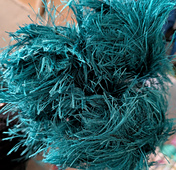From LionBrand.com: “A novelty ‘eyelash’ yarn, Fun Fur is the go-to yarn for that luxurious fur-look. Use it for entire projects from fashion accessories to home accessories, or use it to trim your projects and combine it with other yarns. Fun Fur comes in solids, stripes, and NEW exotics, which feature two different lengths of fur for even more texture.”