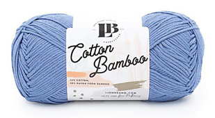 From LionBrand.com: “Combining the softness and drape of bamboo rayon with the durability of cotton, our beautiful Cotton Bamboo yarn is great for year-round projects, such as clothing and baby items. Part of our line of affordable, luxury fibers, Cotton Bamboo is available in 8 colors.”