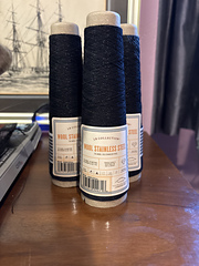 From LionBrand.com: “Part of our collection of affordable, luxury fibers, this unique Wool Stainless Steel yarn creates unique pieces that keep their shape. Strong, yet lacy, it’s great for ethereal wraps or beautiful original jewelry. Combine it with other yarns to add texture and strength to sweaters and accessories.”