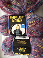LionBrand.com info: Moonlight Mohair is a bulky weight yarn that mixes a strand of soft mohair with a slubbed, sparkly, multi-colored yarn. The sophisticated colors and exciting textures will make any project extra-special.