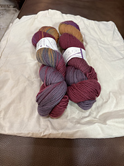 The older base yarn came in 70 gram skeins with 200 yds. The new base yarn, starting around 2015, is still 200 yds. but only 57 gram (2 ozs.) skeins.