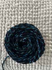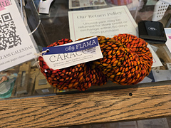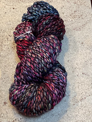 A truly unique yarn! We start with a bulky thick-and-thin single made of our delightfully soft superwash merino wool, and then we criss-cross it with a binder thread (either black or white.) Then the yarn is dyed one of our signature kettle-dyed colorways, and: poof! Something unlike any yarn we’ve made before, inspired by a particular style of handspun yarn. Caracol knits up into a cozy, fluffy fabric with a ton of texture and visual interest. Simple stitch patterns really let it sing!