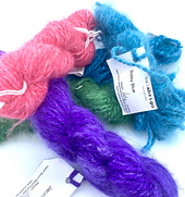 Two ply handspun on a tinka and kettle-dyed 100% angora. Malabrigo Angora is handspun by Native Americans in Argentina and then hand dyed in Uruguay by a cooperative of women. The skeins will vary in weight from 1.5 to 2 oz.