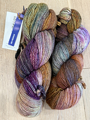 Like Rasta, but thinner! This DK-weight yarn shares Rasta’s lightly-felted, single-ply construction and many of the same gorgeous watercolor-multi colorways, but its lighter weight means it’s fantastic for garments, shawls, and other lightweight applications.