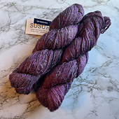 Susurro is 50% Mulberry silk, 25% Merino, and 25% linen, wound as a single ply into a sport weight.
