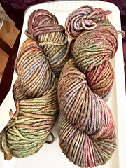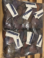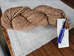 100 % Baby Merino. Twist is a 8 ply subtly thick/thin yarn. This yarn is versatile and can be used to get several different effects. Knit at a tighter gauge, the rustic thick-and-thin quality of the yarn is emphasized, while a looser gauge gives a more even look.