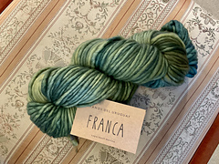 Franca is a fun single ply yarn of 100% incredibly soft merino superwash. It is super chunky yet light, perfect for accessories full of personality.