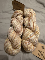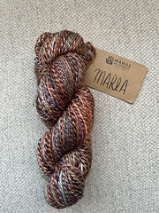 Marla is made from 2 strands of lighter-weight yarn that have been dyed separately and then plied together.