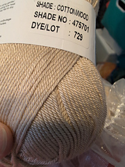 Mary Maxim website gives recommended gauge as 22 sts=4”. This is a DK weight yarn.