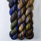 It can be knit at a heavy laceweight or light fingering gauge and is 100% Bluefaced Leicester wool. BFL is a perfect canvas for Babs’ colors, giving the yarn a rich depth and slightly glossy finish.