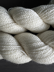 Somewhere between a true laceweight and a fingering weight, we think of Yet as a ‘rustic’ lace yarn, even though it’s a sophisticated merino and silk blend. The slightly heavier grist of this yarn means it’s easy to work with, especially for newer lace knitters. Yet wears well and continues to look good year after year. Try it in shawls and lightweight sweaters.
