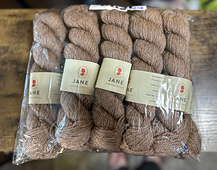 “The base is a blend of British wools: Falkland merino and Masham. The gray-taupe base makes our palette of 11 colors deep and nuanced. … Jane’s versatile and popular DK weight means there’s a world of patterns that will pair beautifully with this soft and character-filled yarn.