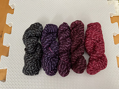 May be sold in sets of 5 mini skeins, 45 yds each. Please adjust yardage and skein weight on individual stash entries. This is the same base yarn.