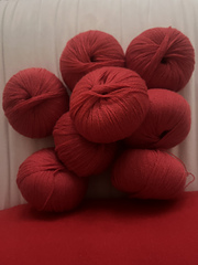 We are offering the cashmere in both Lace and Medium weight in 50 gr balls in a limited palette for now. Ra-Ku is perfect for a delicate light shawl as well for a warm and cozy pullover and pairs beautifully with our Baby Yak.