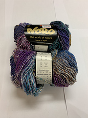 The wonderful color combos of yarn guru Eisaku Noro in his warm-weather gem “Chirimen.” Blending cotton with a touch of silk & a smidgen of wool gives “Chirimen” added softness and lightness for spring & summer, and the colors remind us a bit of auto-striping “Silk Garden.” Great for pullovers, tops, boleros, cardigans, bags, shawls & more.