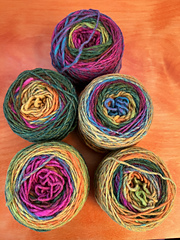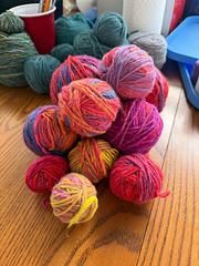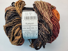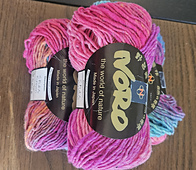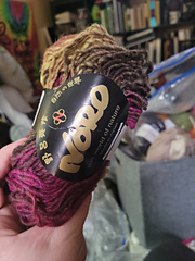 Kureyon has two plies. It can be a little difficult to see, because the yarn has such a “rustic” loosely spun effect, but if you untwist it you will definitely get two plies in your hand. It’s how they get the striated effect that shows up in some dye lots (like, black and orange blurred together.)