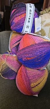 A DK to Sport weight Wool Nylon blend, it comes in huge 150 gram balls with a very generous 410 yards per ball!