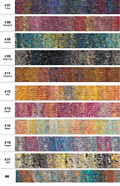 Uchiwa sports unique contrasting color twists that create an eye-catching tweedy marl. At the same time, a longer, more subtle color blending produces a beautiful gradation in the background coloring