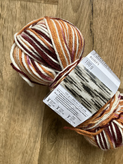 Novita 7 Brothers Korpi is part of the Novita 7 Brothers product family and draws its inspiration from nature. The printed colours in wonderful complementary tones take their cue from tree bark, flowing water and meandering forest paths. The finish will vary according to the number of stitches, tension and needle size used. The final appearance also depends on whether you knit in the round or flat. For one medium size women’s jumper you will need 600 g of yarn. One ball is enough for one pair of women’s basic socks. 7 Brothers Korpi contains 75% wool and 25% polyamide. The products can be machine washed in 40 degrees. The recommended needle size is 4, or 3.5 for socks. A 100 g ball has 200 metres of yarn. Made in Finland.