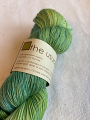 the usual is a dense fingering yarn - smooth, with a nice twist on the many tiny plies that make up the yarn. the usual is kettle dyed using a color layering process that actually creates a play of color within the strand. some of the little plies soak up lighter layers of colors and others darker layers for a very unusual effect. the usual typically does not pool or stripe, the color effect here is unique.