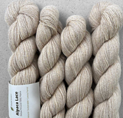 Die Wolle kommt aus Peru und wird auch dort versponnen. Die Alpaca Lace in den drei Farben wollweiß, mocca und mittelgrau kann jederzeit online bestellt werden und wird in 50g-Strängen geliefert.