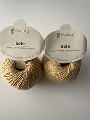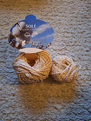 Sole is a wonderful blend of fine Pima cotton and fine cashmere, making it an unusual combination of plant and animal fibres not normally found in cotton yarn. The 90 percent Peruvian Pima cotton mixed with 10 percent Mongolian cashmere make Sole beautifully soft. It is a 6 ply yarn with a triple twist, which makes it strong and yet delicate and shiny.