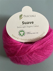 Suave ist eine echte Besonderheit unter den reinen Baumwollgarnen, denn die Fasern werden nicht wie üblich versponnen: Eine Art Netzschlauch aus Baumwolle hält die losen Fasern zusammen. Zudem hat dieses vegane Garn Bio-Qualität.