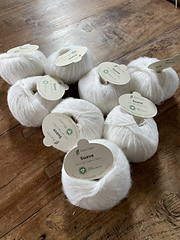 Suave is as soft as cashmere. When you iron your knitted project, the surface becomes smooth, light and cool. When you brush it, it recuperates its fluffy volume and warmths wonderfully.