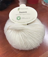 Suave is not a classic yarn; its fibers are not spun or twisted in the usual manner, but placed in a “cage” (made of cotton yarn) and steamed together. This provides its extreme lightness and soft touch. In addition, the cotton fibers used are extremely fine (about 14 microns).