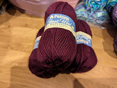 100% wool. Perfect for accessories. Light enough for coats and cozy sweaters. (Patons Yarns)