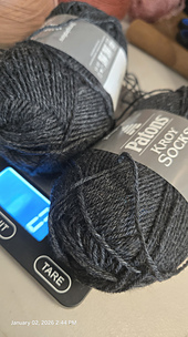 The older green label says simply “Kroy 4-ply” and may have 203 yds. in 50 grams, while the yellow label says “Kroy Socks” hand has 192 yds. in 50 grams. The tan label says “Kroy Socks” with 166 yards in 50 grams. All of the above show gauge of 28 sts/4” for knitting. The new gray label shows same put up as the tan label but with a 32 sts/4” gauge for knitting.