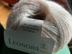 Leonora by Permin indeholder 50% silke, 40% uld og 10% kid mohair og løber ca. 180m på 25g.