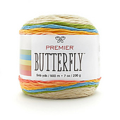 Butterfly™ features a unique stripe pattern with two-thirds of the ball one solid color and the remaining third features a five-color stripe. Each ball stops and starts at the same point of the stripe pattern, taking away the frustration of finding the right spot in the stripe pattern. Butterfly™ is made with Anti-Pilling Acrylic so your project will look Like New, Wash After Wash.™.