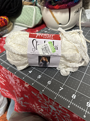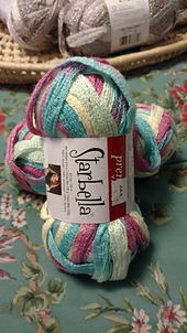 Tape opens up to a mesh/ netting type of fabric which you then knit with to achieve a ruffled effect.