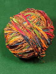 Composed of 30-40 different hand dyed, gauge coordinated yarns. They are tied together end to end by hand, so that as you knit the texture and colors are always changing. Moderate eyelash, metallic, and other highly textured yarns. Cool StuffTM has no wool, mohair or other animal fibers in it.