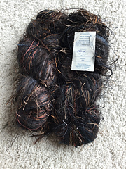 Wild Stuff is composed of 30-40 different hand dyed, gauge coordinated yarns. They are tied together end to end by hand, so that as you knit the texture and colors are always changing. Wild Stuff has a lot of eyelash, metallic, and other highly textured yarns. Wild Stuff has some wool, kid mohair and other animal fibers in it.