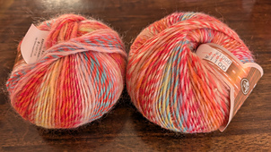 A multi-color mix gradient-dyed yarn spun with two high quality 7 color gradient-dyed wool mohairs. Because of the medium-fine thread count due to spinning of this thread, you are able to make goods of a refreshingly thick nature with both crocheting hooks and knitting needles. Also, it can handle combinations with other yarns, letting you enjoy unrestricted garment creation.