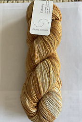 This fingering-weight yarn relaxes and blooms beautifully when blocked to form a soft, fluid fabric, with a luster that catches the eye like light on water and with a touch of wildness from the linen fibers sprouting from the strand.