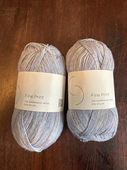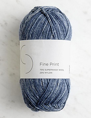 Fine Print is a classic sock yarn, springy, durable, and super soft. Spun and dyed in Peru with 75% superwash wool and 25% nylon, its round, 4-ply structure lends excellent stitch definition and strength that will last through daily wear and many trips through the washer and dryer.