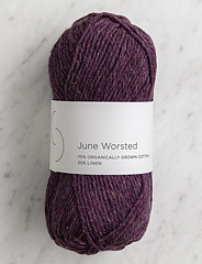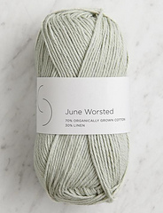 Made with breathable cotton and cooling linen, June Worsted is a squishy worsted-weight yarn that heralds summer with a laid back character, as soft as your best-loved sweatshirt!