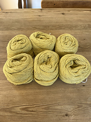 Spun from four 2-ply strands, this fingering-weight yarn is strong and pleasantly dry to the touch, with the smooth, soft touch of finely sanded olive wood.