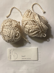 - Serif’s structure, a soft single ply of cotton wrapped with a thin cotton thread, creates an undulating strand that knits into a slightly knobbly fabric, elegant but playful and absolutely gorgeous.