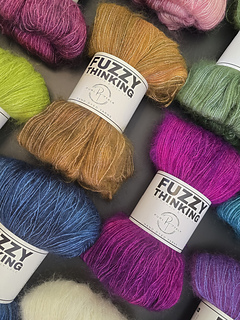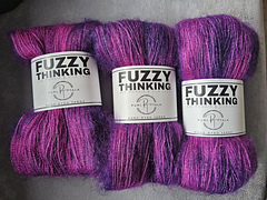 Fuzzy Thinking is an exquisitely hand dyed yarn from Purl Talk! Also sold in mini skein sets.